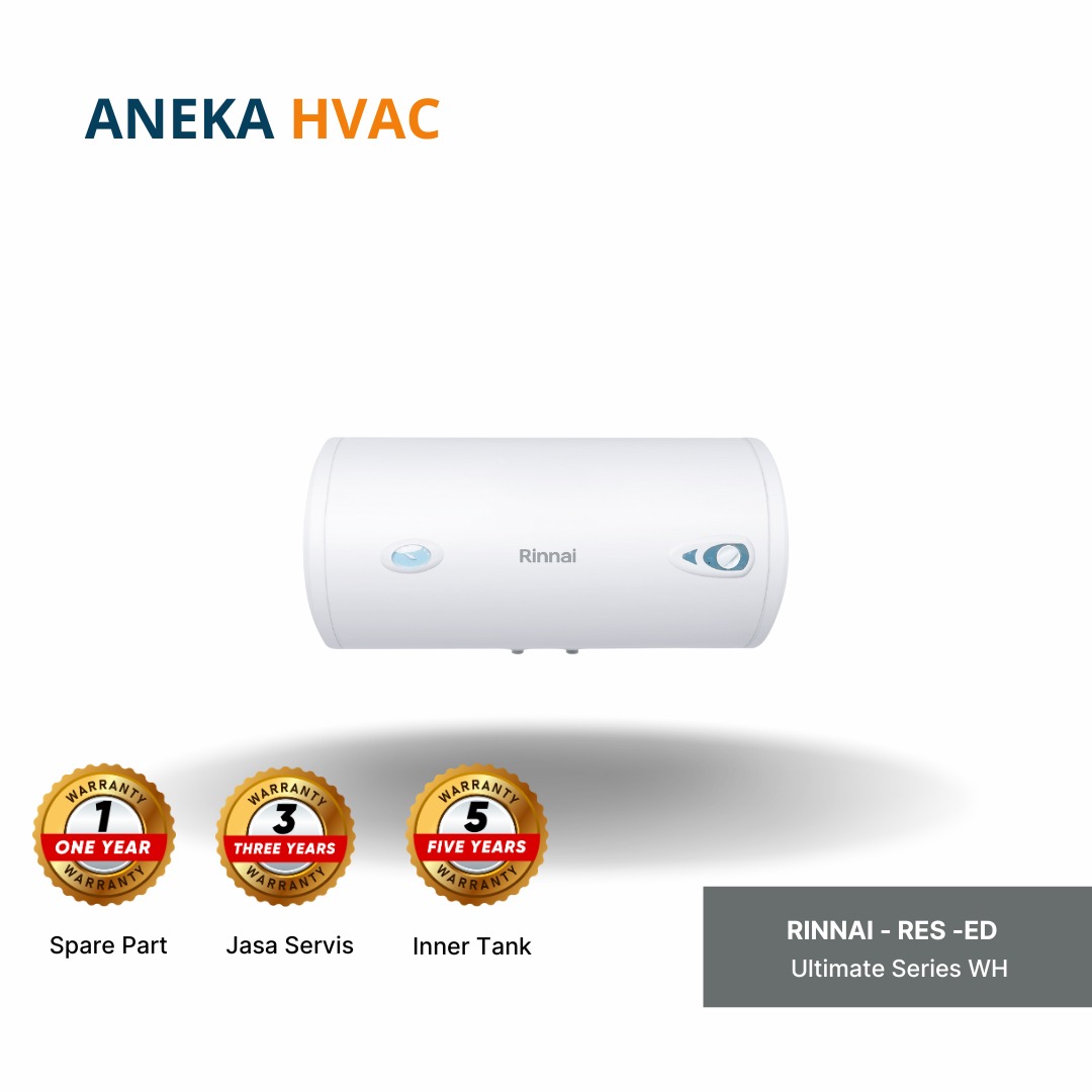 Rinnai - Ultimate Series - RES - ED dapat memberikan kenyamanan mandi air hangat untuk keluarga tercinta kini lebih mudah dengan Rinnai Water Heater RES-EE. Dibekali elemen pemanas berbahan Incoloy yang tahan karat dan tidak mudah keropos, water heater ini menjadi pilihan yang ideal. Dengan kapasitas besar yang cukup untuk tiga orang, produk ini memastikan keluarga anda dapat menikmati pengalaman mandi air hangat dengan lebih praktis dan nyaman.
