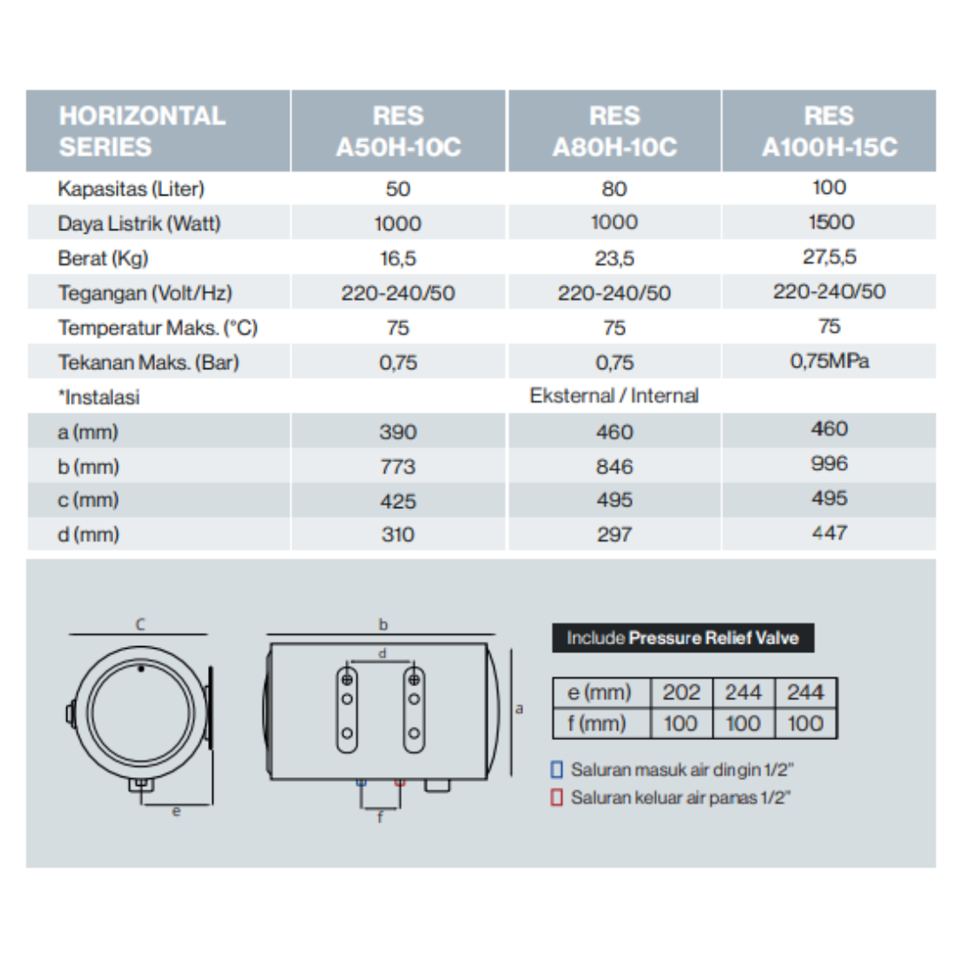 Rinnai - Gold Series - RES - Horizontal dapat memaanjakan diri Anda dengan mandi air hangat setelah seharian beraktivitas menggunakan Rinnai Water Heater RES-Horizontal. Dilengkapi elemen pemanas berbahan Stainless Steel 310s berkualitas tinggi, produk ini tahan karat dan tidak mudah keropos.
