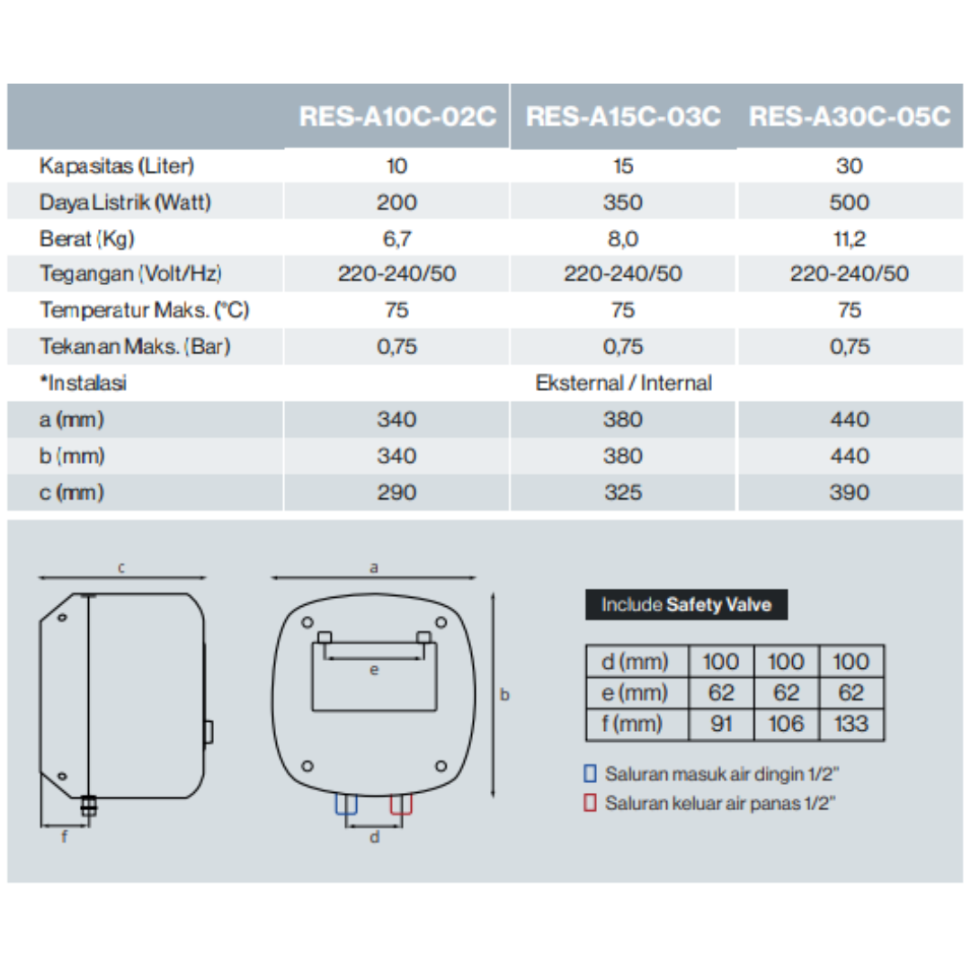 Rinnai - Gold Series - RES ini memberikan perasaan rileks dari aktivitas sepanjang hari anda dengan mandi air hangat. Didesain dengan elemen pemanas berbahan Stainless Steel 310s berkualitas tinggi, produk ini tahan karat dan tidak mudah keropos. Juga, dilengkapi dengan pipa air berbahan anti bakteri yang mampu menghasilkan ion AG+, sehingga mencegah pertumbuhan bakteri dalam pipa. Sehingga keluarga anda dapat menikmati air yang lebih bersih, sehat, dan murni.