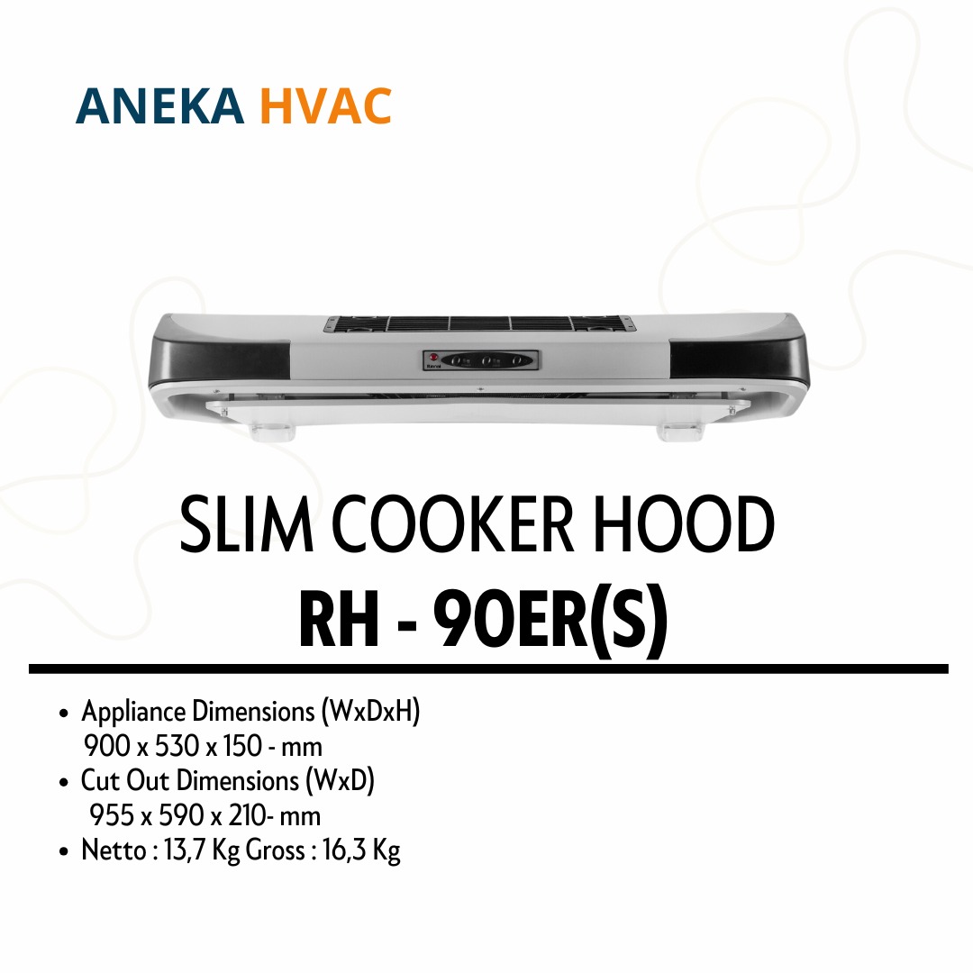 Rinnai - Slim Hood RH-90ER(S) adalah Cooker Hood berwarna stainless steel dengan ukuran 90 cm ini dirancang sebagai penghisap asap dapur yang efektif untuk mengeluarkan asap masakan. Dilengkapi oil pack untuk menampung minyak, recycle system untuk sirkulasi ulang asap, desain modern, dan suara yang minim, RH-90ER(S) cocok untuk dapur Anda.