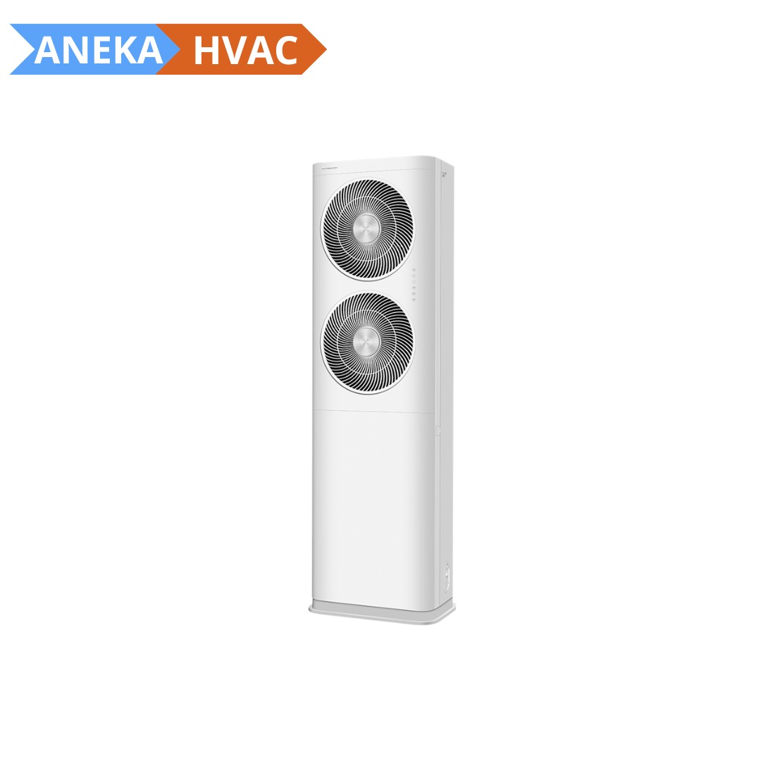 Dengan dua grille udara berukuran besar, unit ini mampu menghasilkan volume udara hingga 2050 m³/jam dengan hembusan yang kuat. Grille atas dirancang untuk mengarahkan aliran udara secara optimal, memberikan jangkauan hingga 9 meter sehingga kesejukan cepat menyebar ke seluruh ruangan. Sementara itu, grille bawah secara otomatis mendistribusikan udara ke area yang lebih luas untuk kenyamanan menyeluruh.