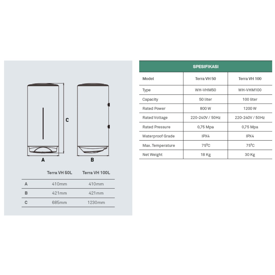 Dengan kapasitas yang lebih besar, Terra memastikan Anda selalu memiliki pasokan air panas yang cukup untuk memenuhi kebutuhan sehari-hari, baik untuk rumah maupun villa.