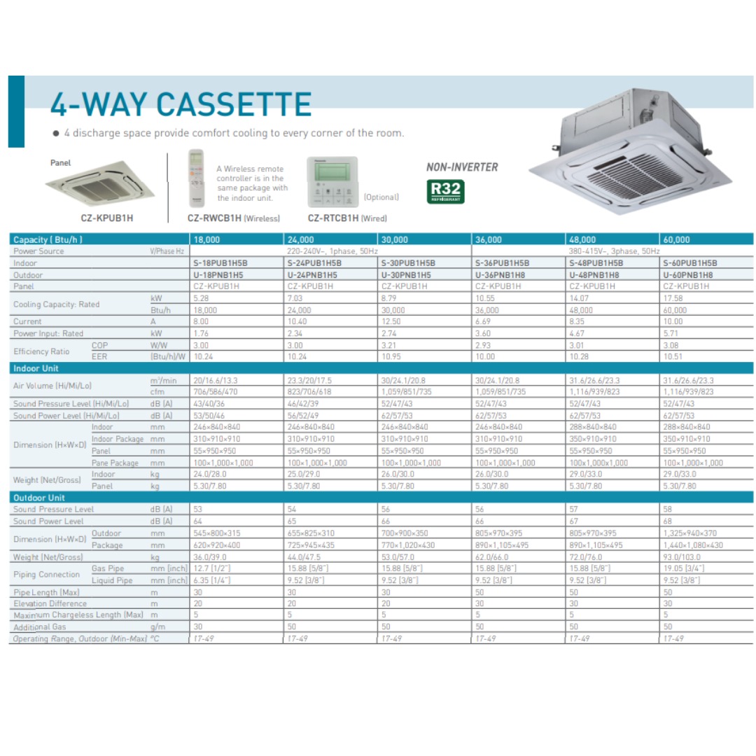 AC Panasonic 4-Way Cassette Fresh Series Non Inverter R32