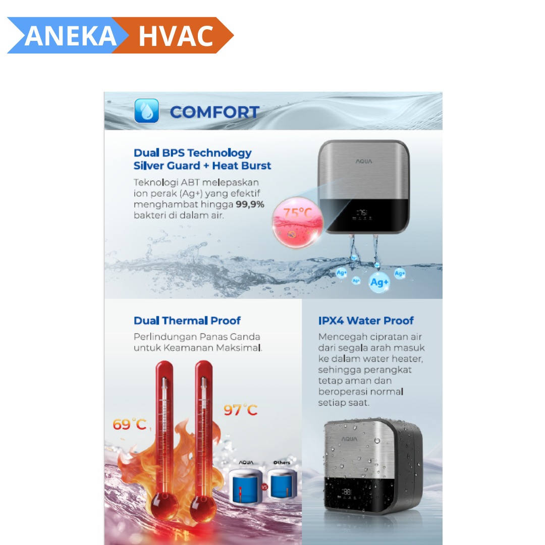 Mandi air hangat kini lebih aman, nyaman, dan efisien bersama AQUA Nova Series. Dirancang dengan teknologi modern dan standar kualitas tinggi, Nova Series menghadirkan performa pemanasan air yang stabil untuk kebutuhan harian keluarga.