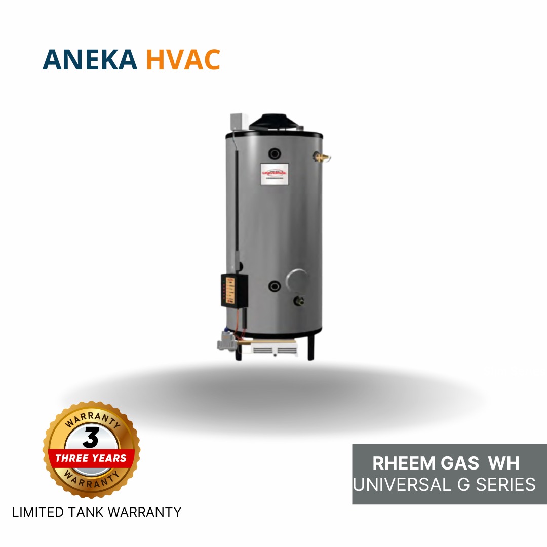 Rheem - Universal G series adalah Pemanas air Universal memudahkan retrofit komersial dengan desain ringkas, sambungan air fleksibel, dan efisiensi termal 80% (98.000–399.900 BTU/jam, suhu maksimum 180°F).