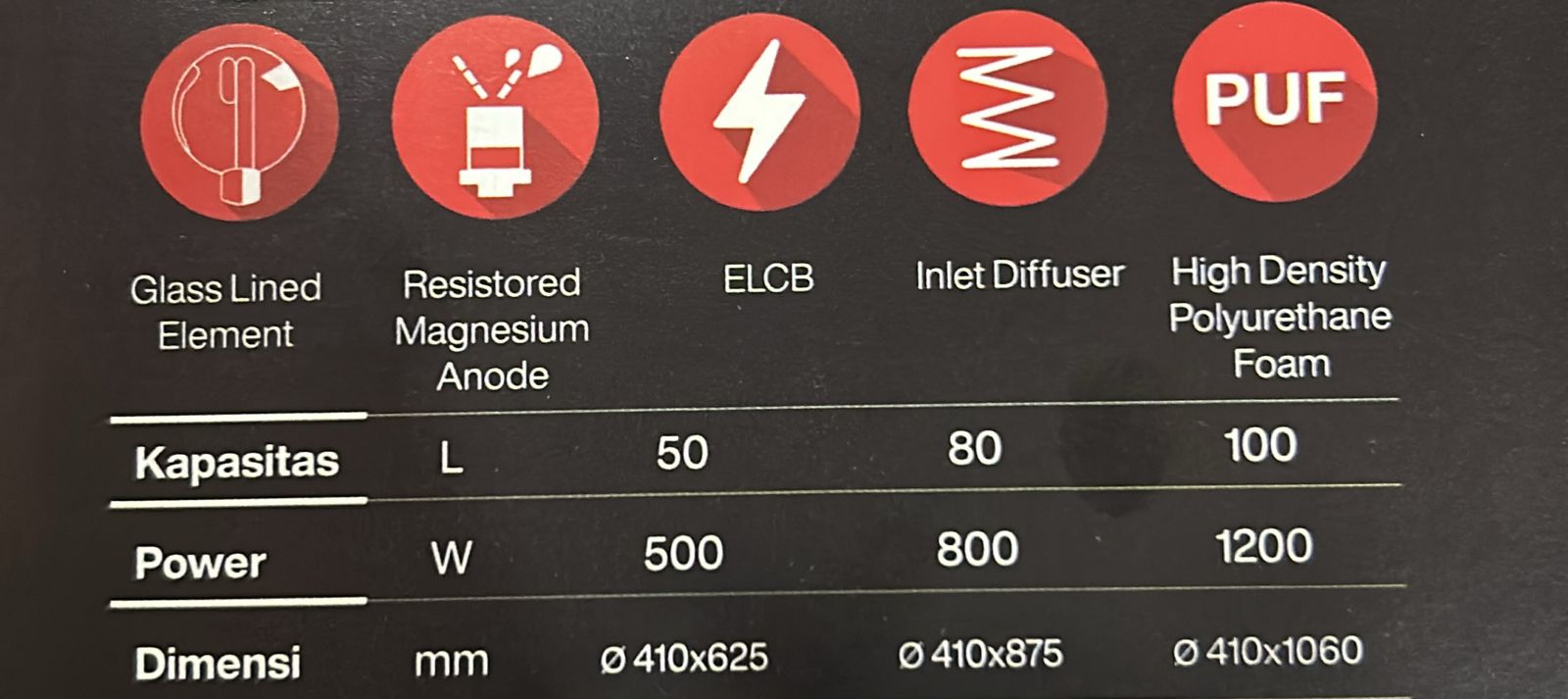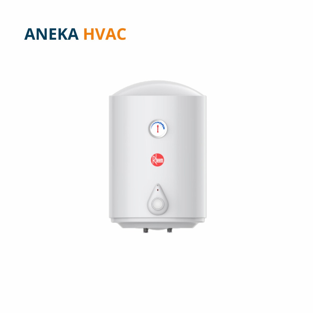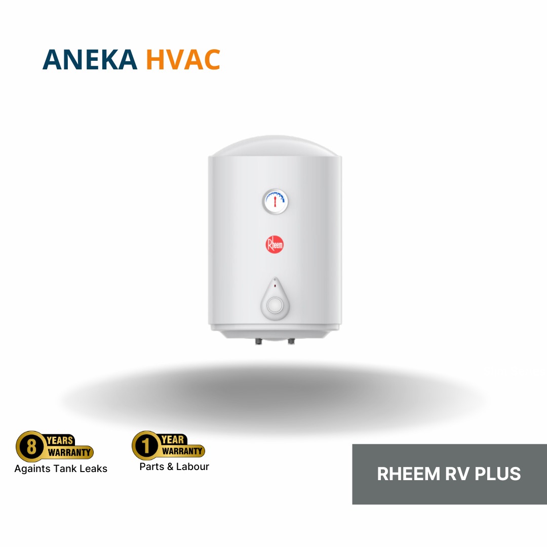 Rheem - RV Plus Series terdapat kapasitas 50, 80, 100 Liter. Water Heater ini juga di lengkapi elemen pemanas dari bahan Titanium Incoly yang dilapis oleh enamel sehingga lebih tahan lama dan Polyurethane foam yang lebih rapat dan tebal, dan mempertahankan air panas didalam tangki lebih lama.