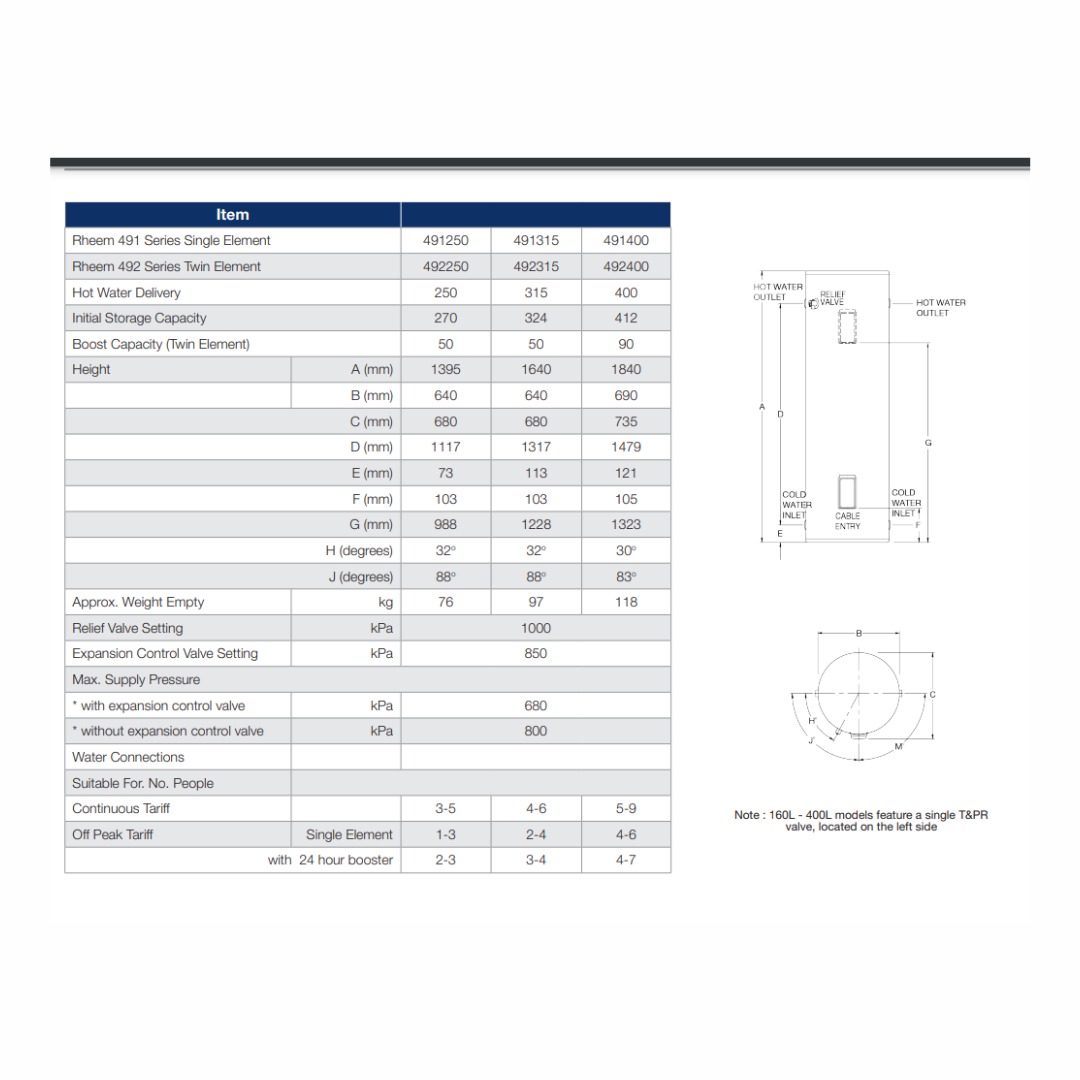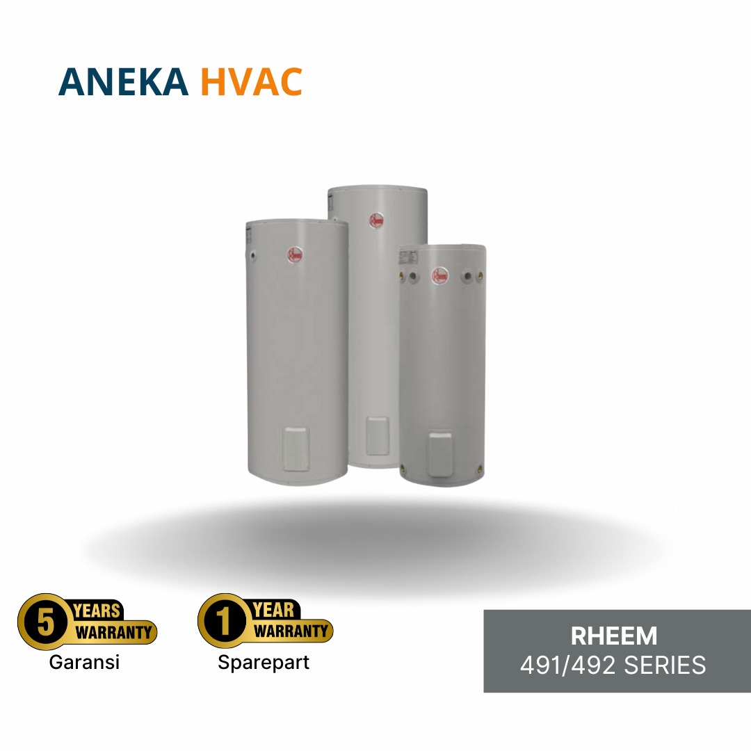 Rheem - FURY RHEEMGLAS 491/492 Series terdapat single atau dual heating element. beberapa ouput air panas, cocok untuk di luar / outdoor, memiliki kapasitas yang besar.